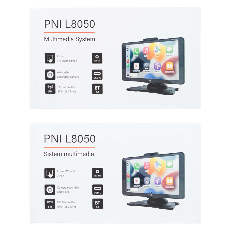 Car multimedia system PNI L8050 with 7-inch screen, Apple Carplay and Android Auto, Android/iPhone mirroring, FM transmitter, reversing video camera included