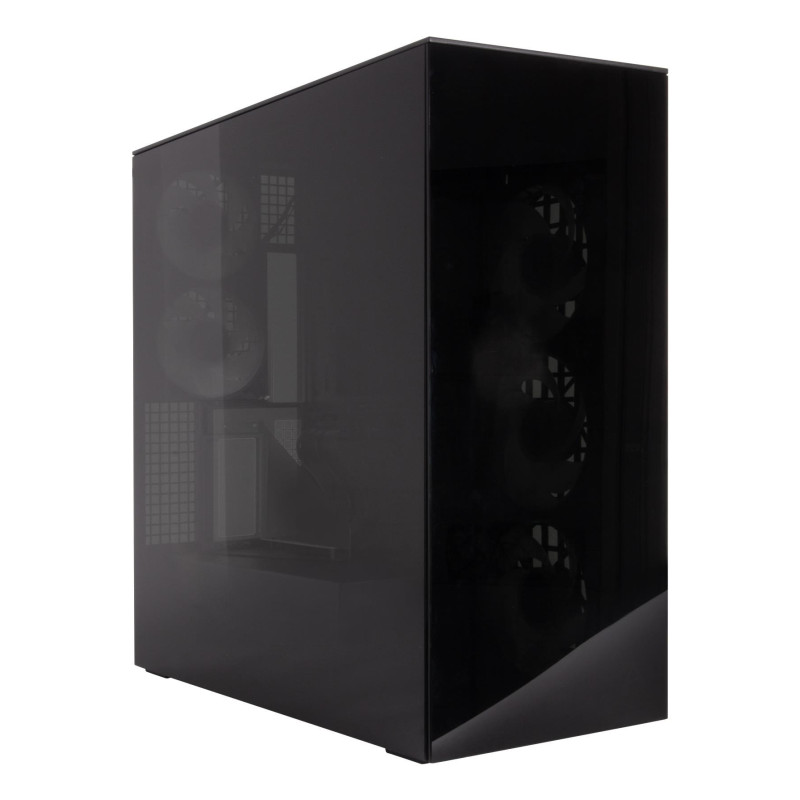 Integrated glass panel with 24 A-RGB LEDs illuminates the lower section of the case.