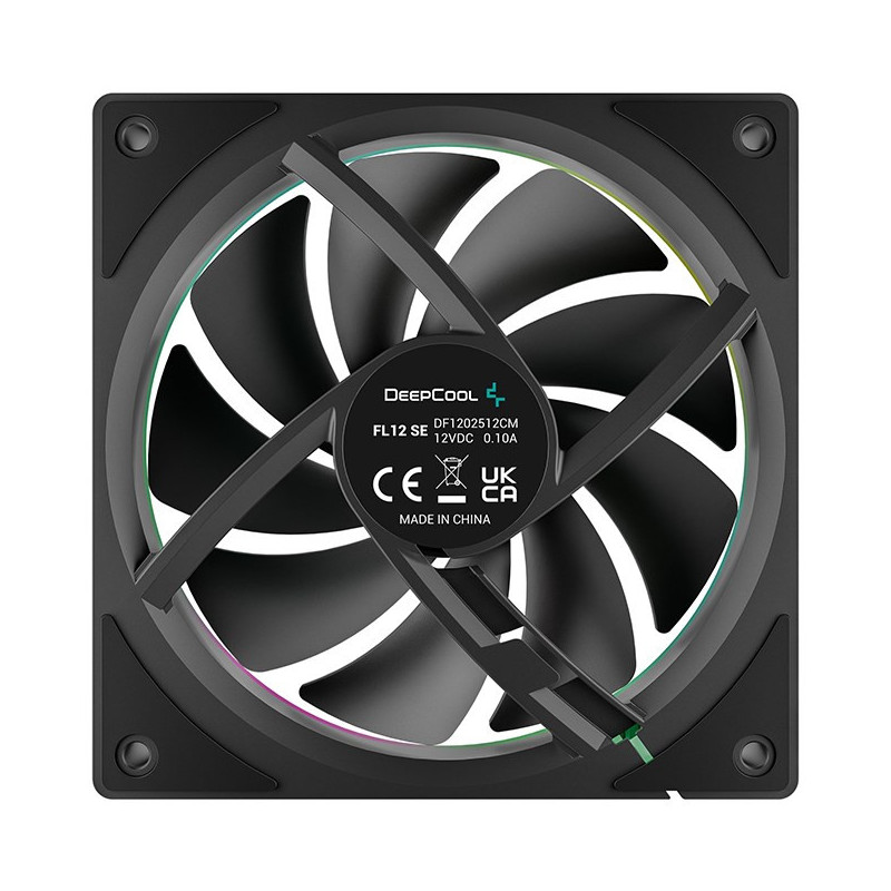 DEEPCOOL FL12 SE is a 12 cm black computer case fan with multi-color LED lighting and a maximum speed of 1900 RPM. It has 9 fan blades, PWM support and a noise level of 28.67 dB.
