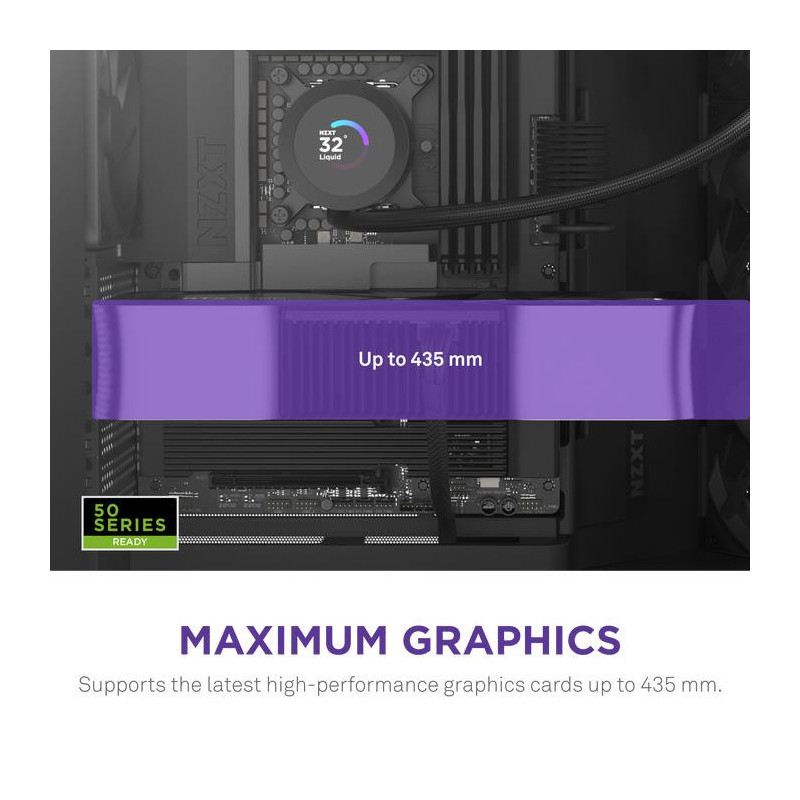 Handles GPUs up to 435 mm, giving plenty of space for top-tier graphics cards.