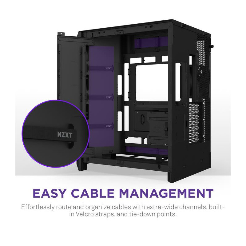 Extra-wide channels, Velcro straps, and tie-down points make cable routing simple.