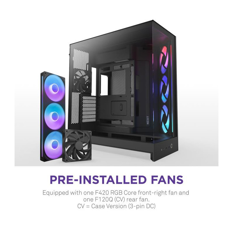 | Summary | NZXT H9 Flow RGB. Form factor: Midi Tower, Type: PC, Product colour: Black. Front fans installed: 3x 140 mm, Front fans diameters supported: 120,140 mm, Rear fans installed: 1x 120 mm. Supported HDD sizes: 2.5,3.5". Width: 315 mm, Depth: 481 mm, Height: 506 mm |