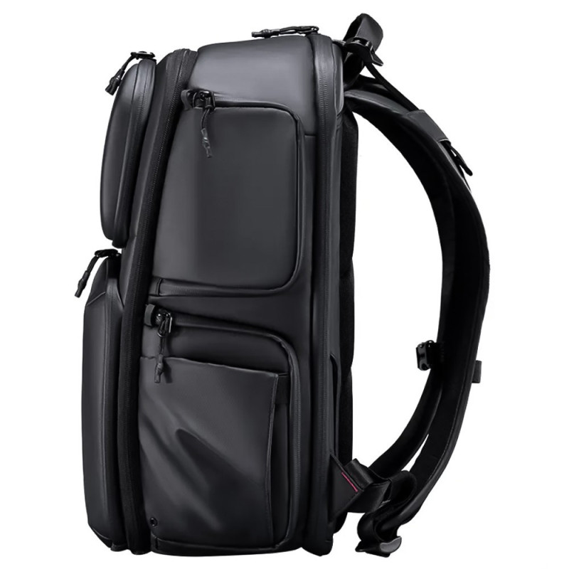 The ULANZI BP10 backpack has a capacity of 25 liters, expandable to 35 liters, has a customizable interior with multiple compartments to organize your gear. The backpack also has a dedicated 17" laptop compartment, water-resistant material, and adjustable padded straps for comfortable carrying.