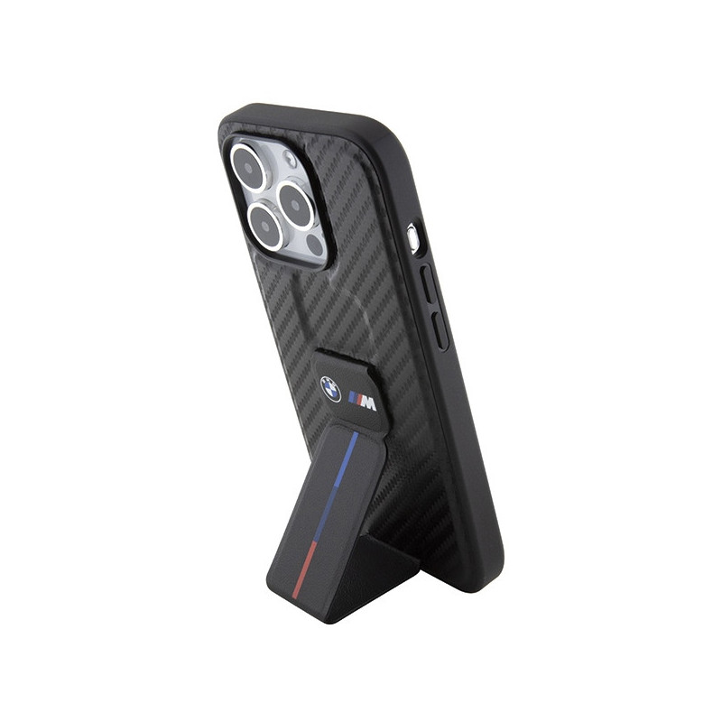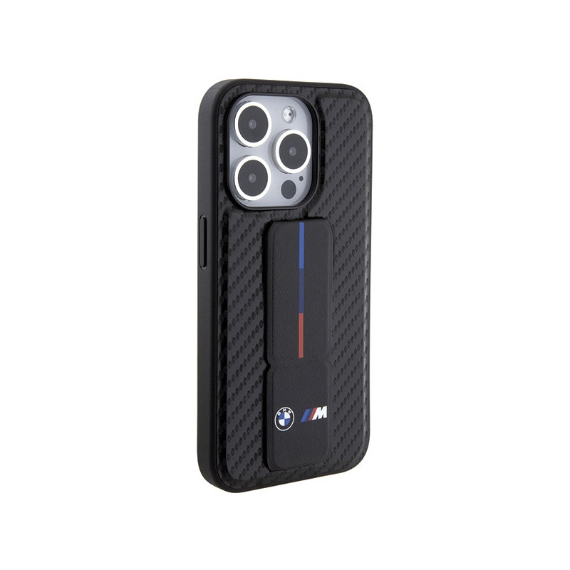 BMW Grip Stand Smooth & Carbon case for iPhone 15 Pro - black