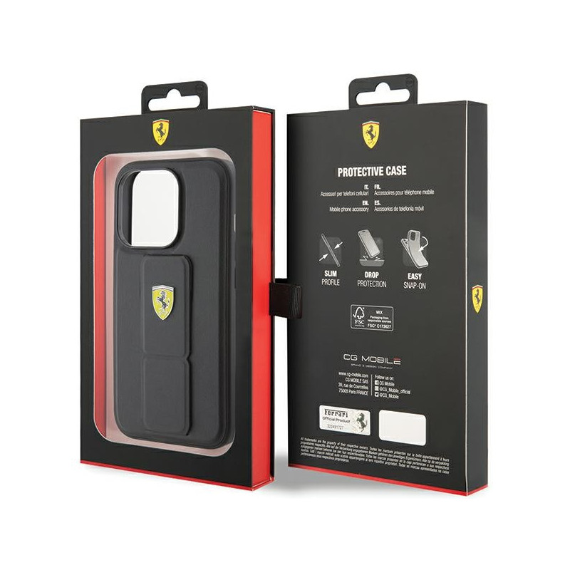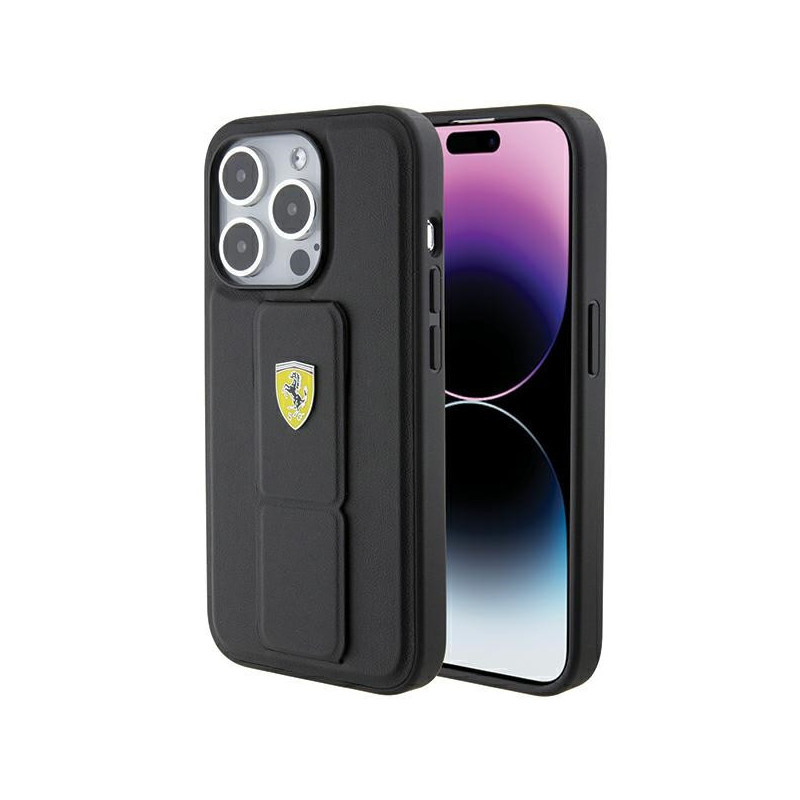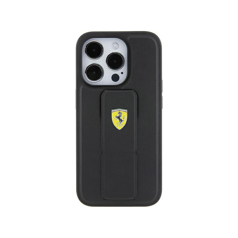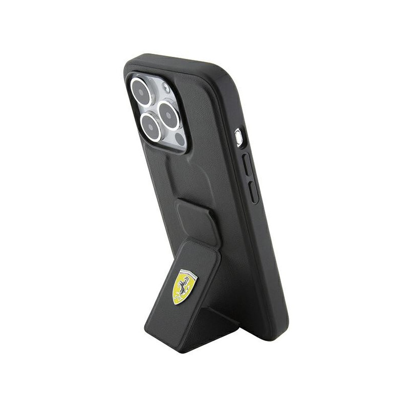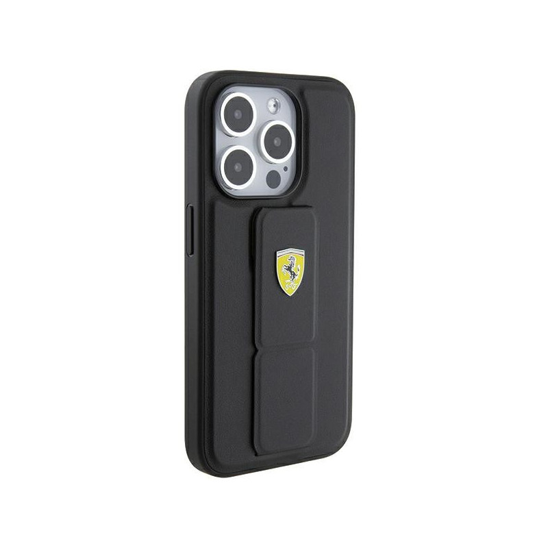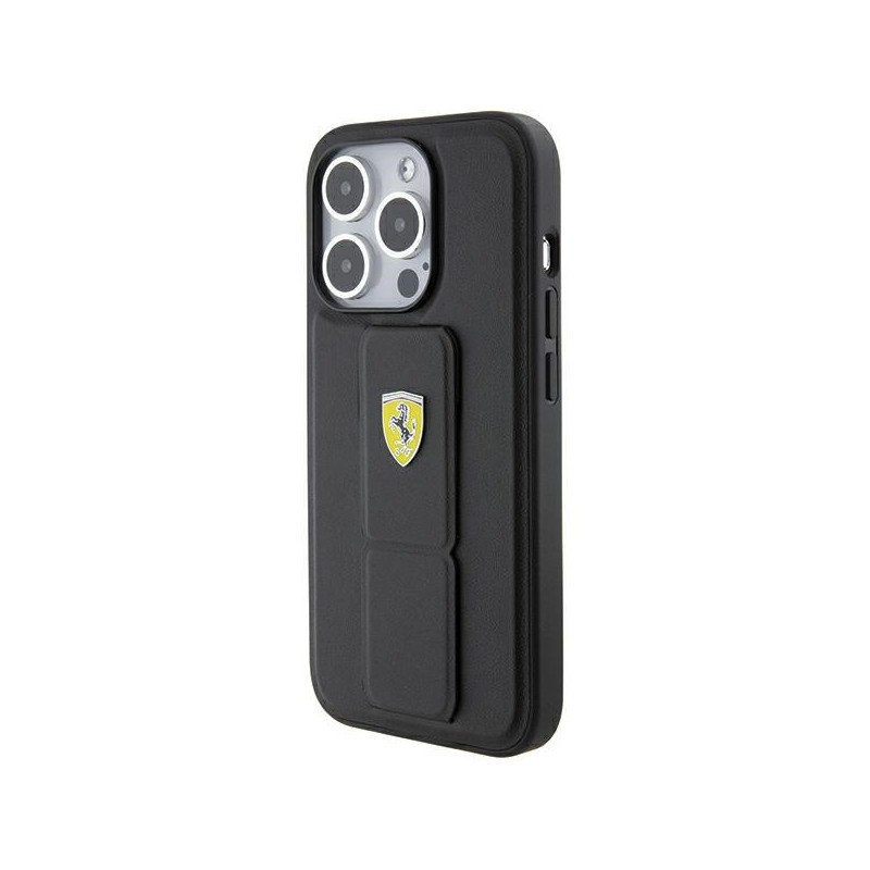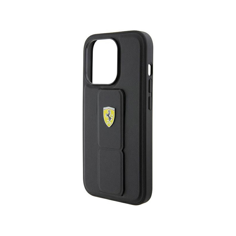 Ferrari Grip Stand Metal Logo case for iPhone 15 Pro Max - black