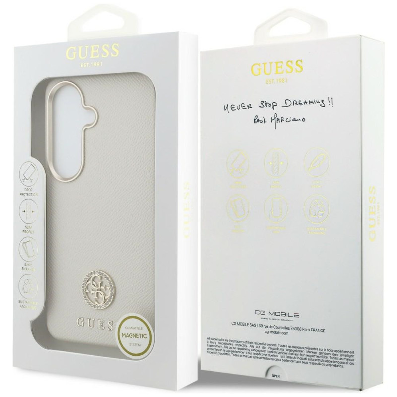 The Guess 4G Rhinestone Round Logo is an exclusive line of protective cases that combines exceptional functionality with a stylish, unique design. This collection was designed for those who value not only the security of their phone but also an elegant appearance.