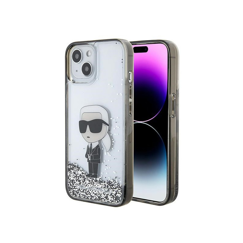Karl Lagerfeld KLHCP15SLKKNSK iPhone 15 6.1" transparent hardcase Liquid Glitter Ikonik