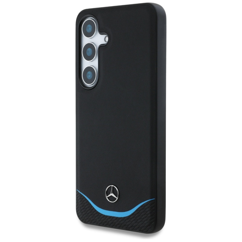 Mercedes Leather Contrasted Blue Horizontal Curve MagSafe Case for Samsung Galaxy S25 - Black