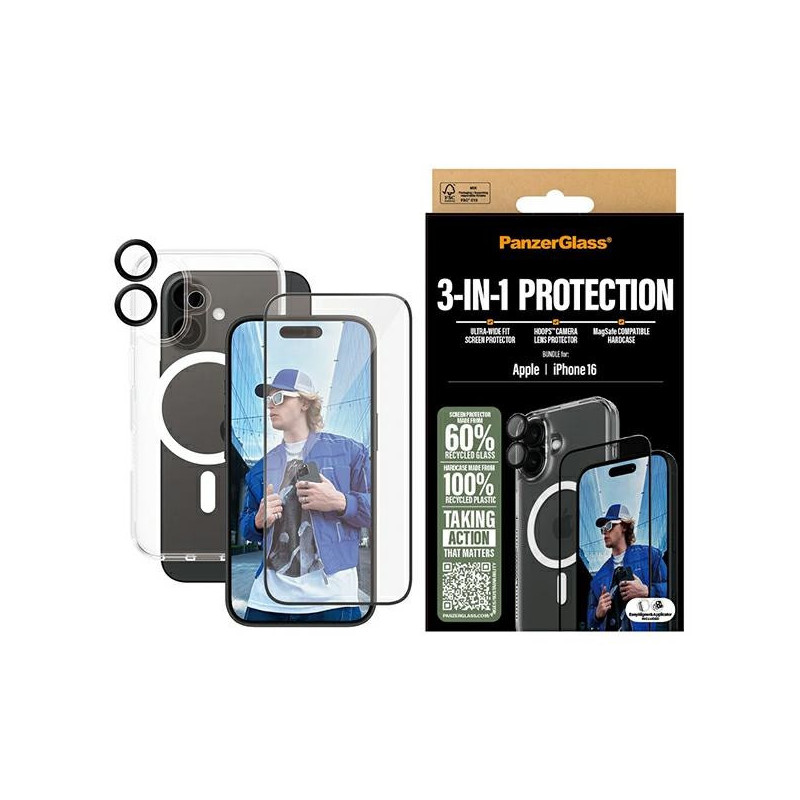PanzerGlass Bundle 3in1 iPhone 16 6.1" D3O Hardcase + Screen Protector UWF+ Lens B1291+2861+1283