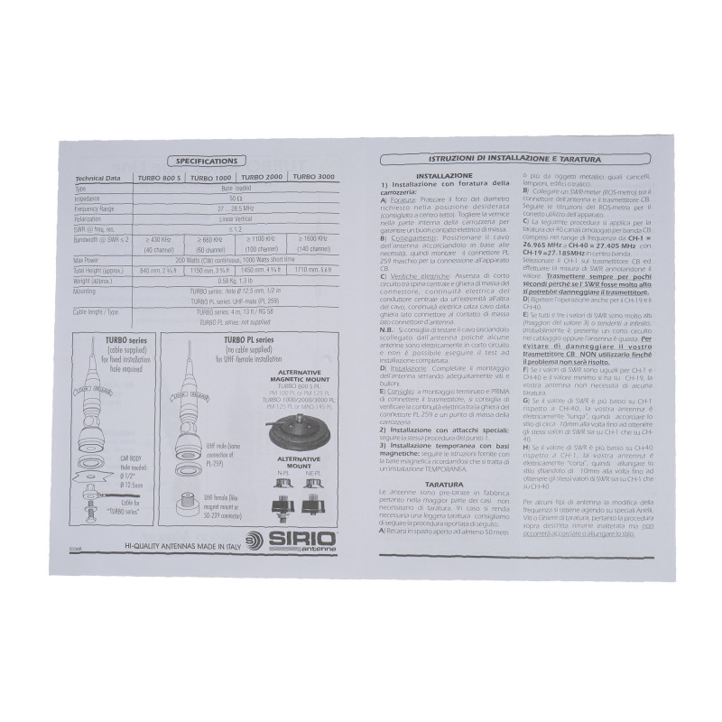 CB Antenna Sirio Turbo 3000PL Blue Line Cod 2202405.41 without cable