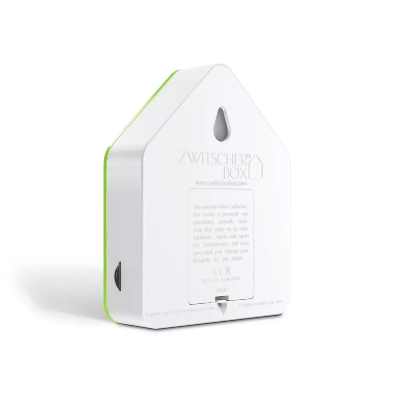 A sounding birdhouse with a sensor that emits the sounds of forest birds. Whether it's a bathroom, toilet, kitchen, hallway, balcony or office: you can place the chirping box anywhere or simply hang it on the wall.