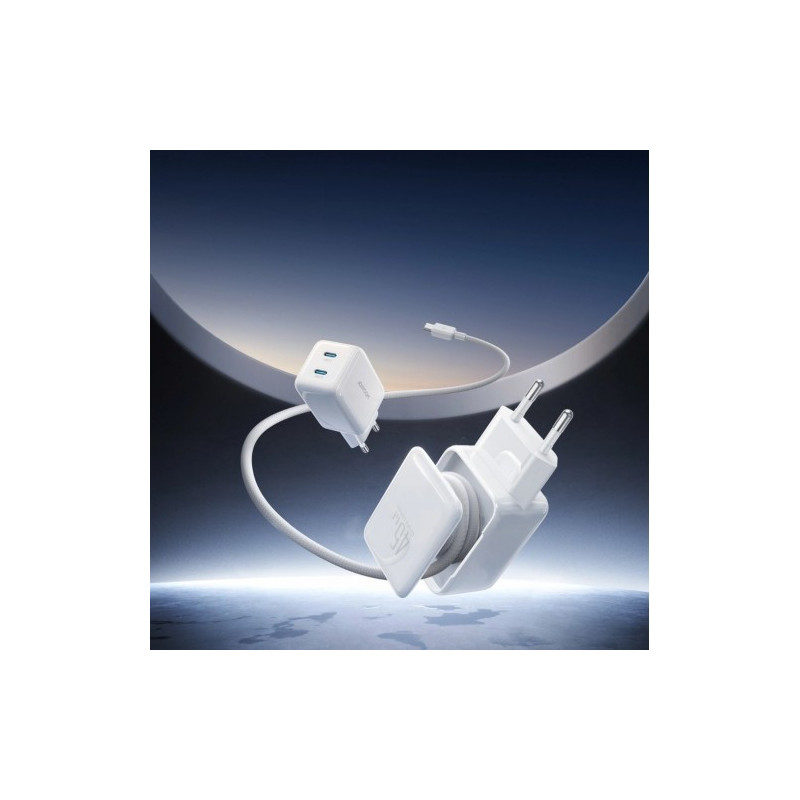 Charger Joyroom 'TCL05' white GaN Ultra 45W (2xUSB-C) + 'Type-C' 120cm 60W cable