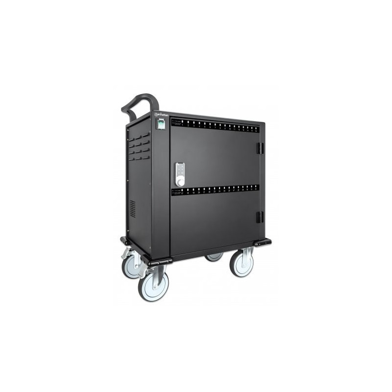 Manhattan iPad to 13", MacBook Air to 13" & Chromebook to 14" 32-bay Charging Trolley/Cart via USB-C, Also other tablets/smartphones (with device to USB-C cable), Bays 330x22x235mm, Device charging cables not included (suggest USB-C cable 354868),Cabinet