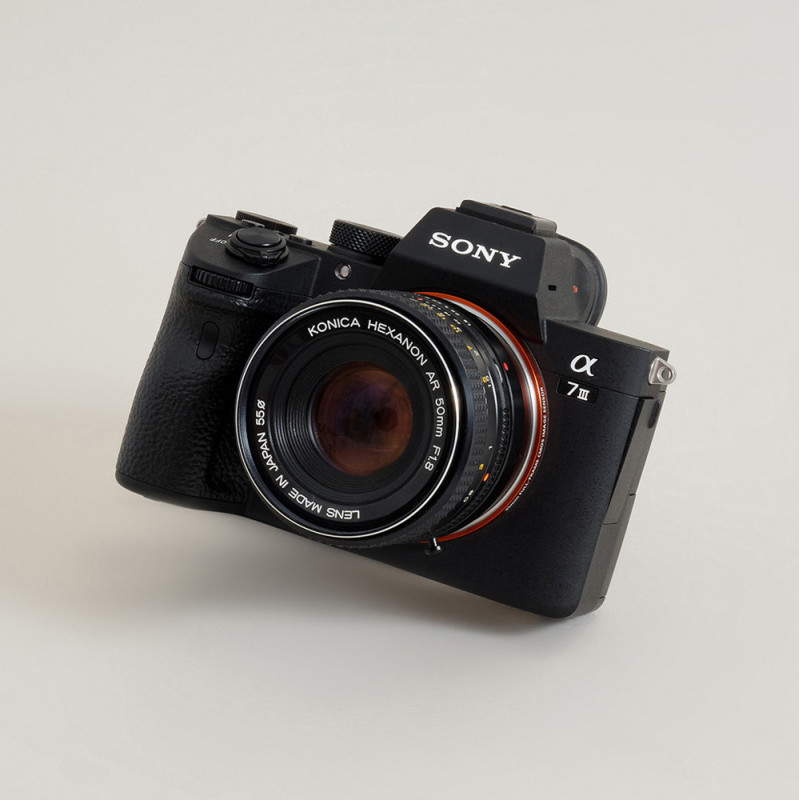 The lens mount adapter allows you to use Konica AR lenses on Sony E-mount cameras. Manual adjustment of aperture, focus and exposure settings is required.