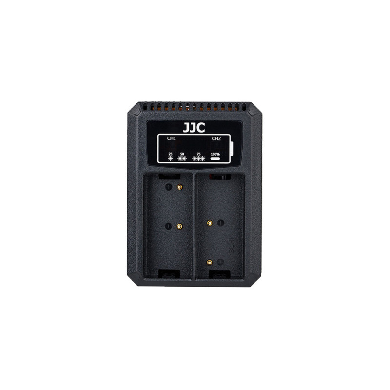 The Olympus DCH BLH1 USB Dual Battery Charger allows you to charge two Olympus camera batteries simultaneously. It features a USB port for convenient charging options.