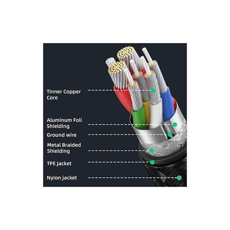 The cable provides data transfer up to 5Gbps, supports 60W fast charging, and outputs video and audio signals. It is a multi-port power extension cable designed to protect the ports of your computer or smart device from wear and tear.