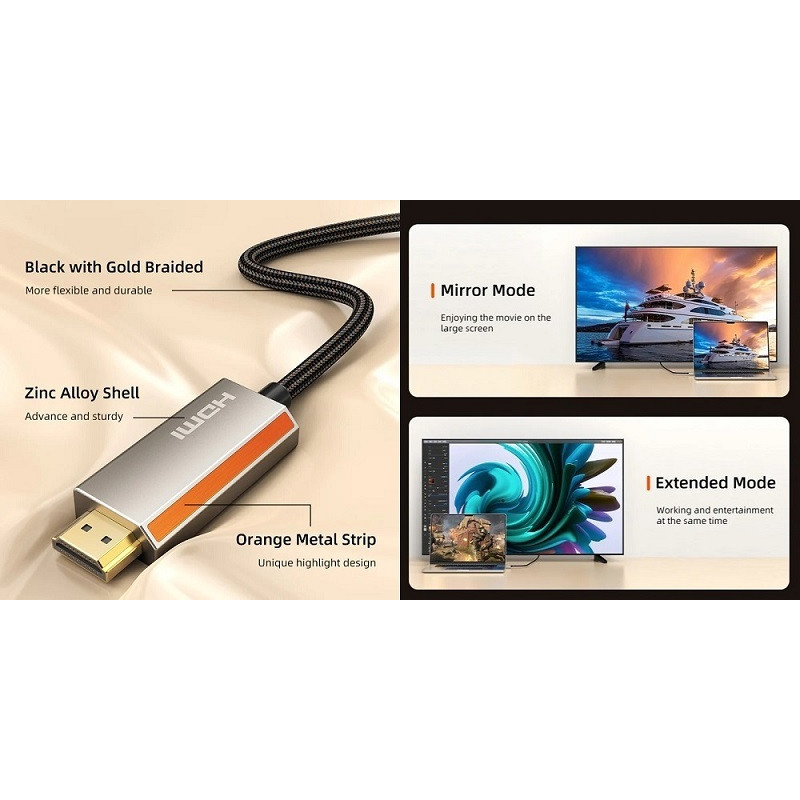 The USB Type-C to HDMI cable connects your laptop, tablet (like MacBook Pro, iPad), or smartphone to an HDTV, monitor, or projector. It lets you transfer video and audio from your computer to your monitor, watch videos, or play games. Simply connect the cable and configure your monitor for desktop mirroring or extended mode.