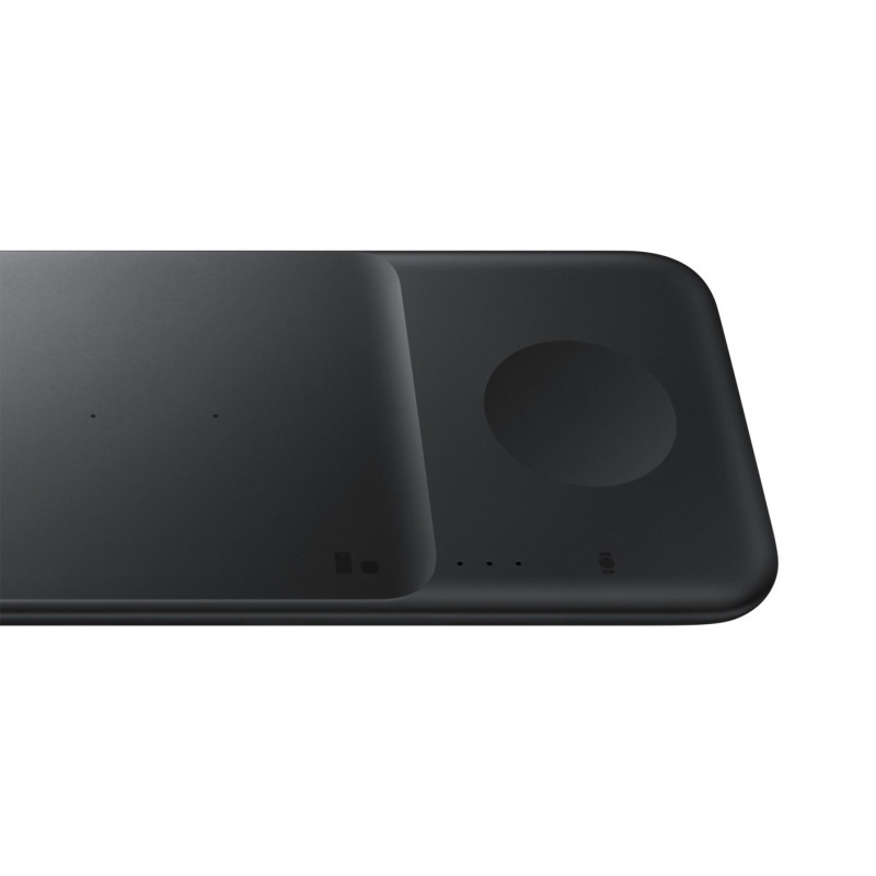 The Samsung EP-P6300 wireless charger supports 9W fast charging and a USB connection, suitable for headphones, smartphones and watches. The device has LED indicators and a 1-meter cable.