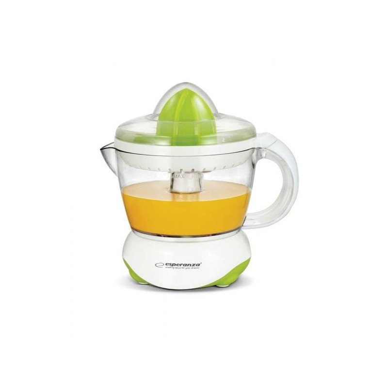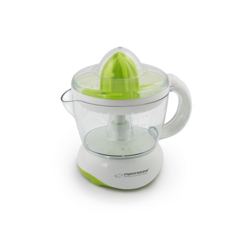 Esperanza EKJ001G manual citrus juicer with removable juice container and on/off switch. Non-slip feet ensure stability, and the reverse function makes cleaning easy.