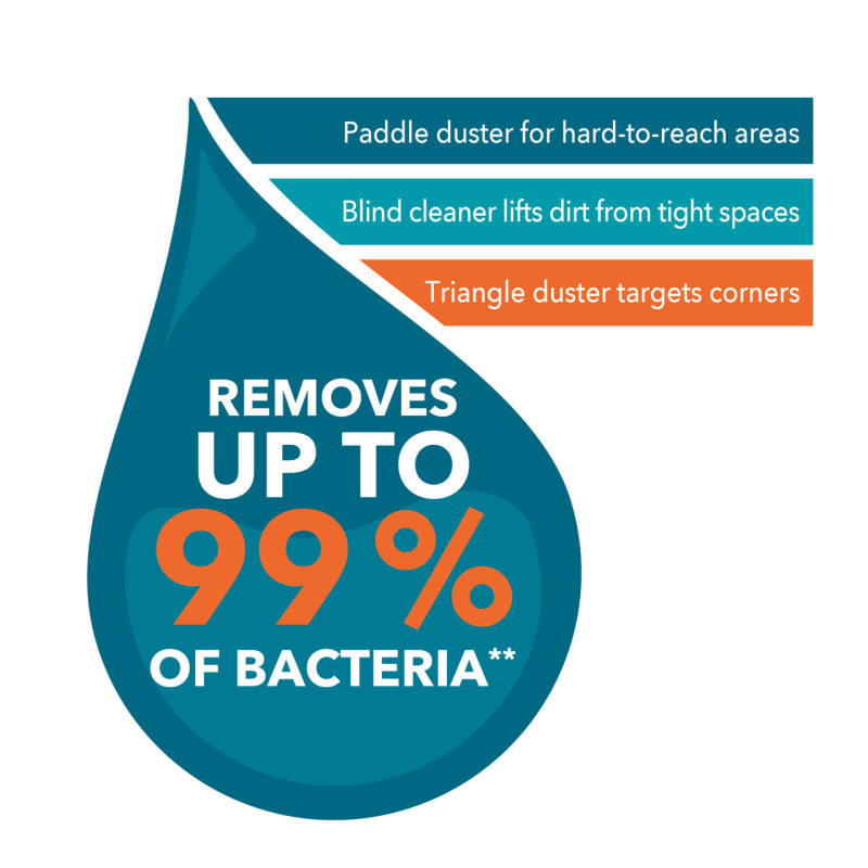 With a paddle duster for hard-to-reach areas, triangle duster for corners, and blind cleaner for tight spaces, for an easy clean.