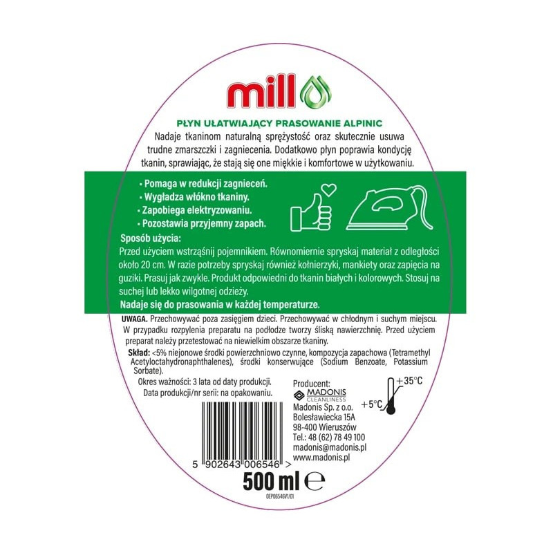 Mill ALPINIC Ironing Aid Liquid Spray 500 ml