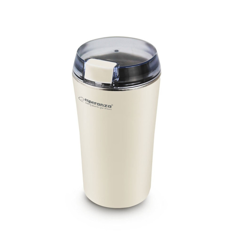 The Esperanza EKC008W is a compact coffee grinder designed for efficient use. It features stainless steel blades for optimal grinding performance, an integrated dispenser for convenient serving, and a pulse function for individual grinding.