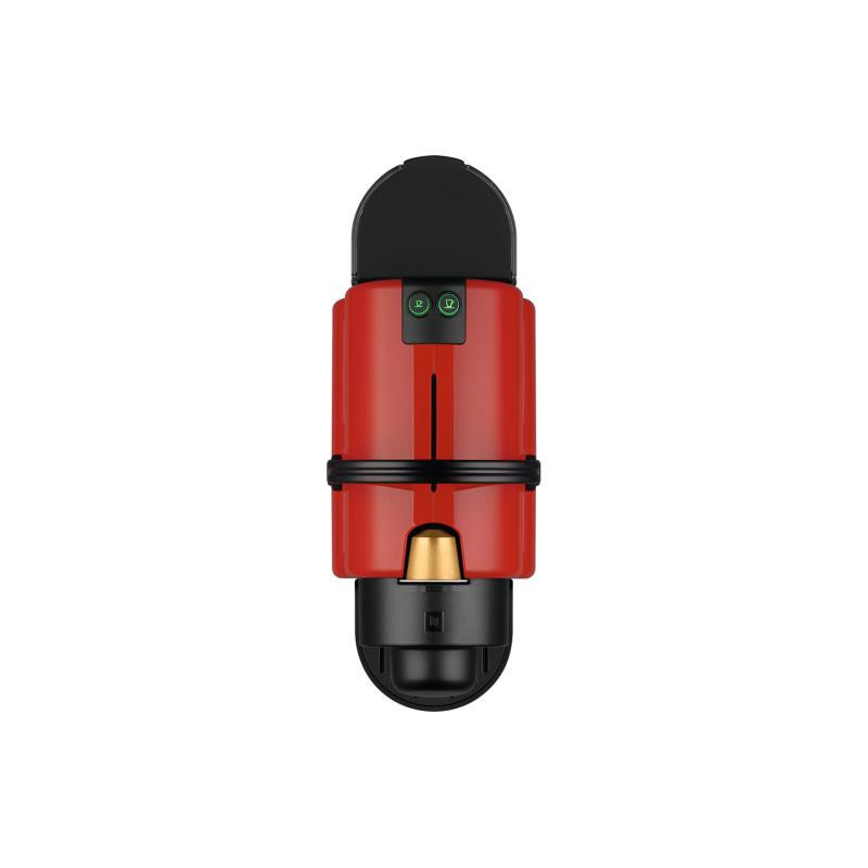 The Krups Nespresso Inissia (XN1005) is a red capsule coffee machine with a 0.7 liter water capacity and a 19 bar pump pressure. It is designed to be used with coffee capsules and measures 345 x 190 x 335 mm.