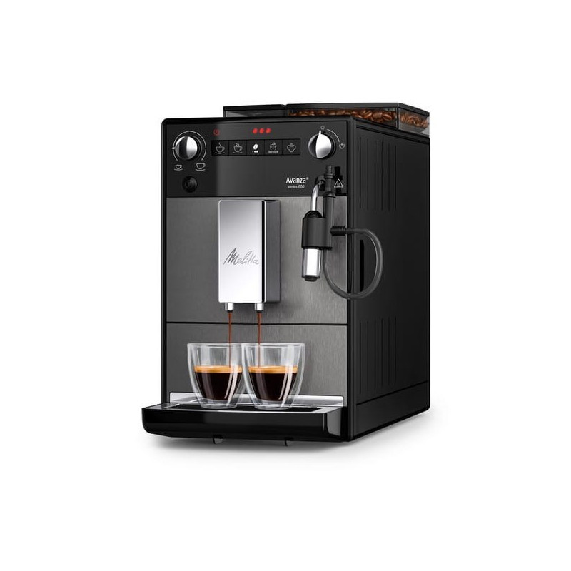 The MELITTA Avanza F27/0-100 is a fully automatic tabletop coffee machine with an integrated grinder and adjustable functions for optimal taste.