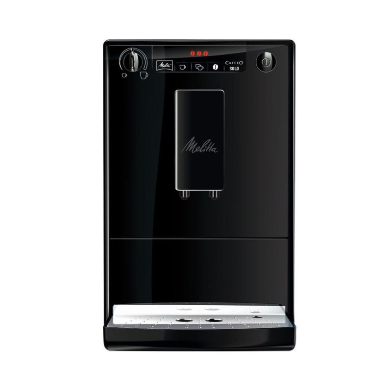 The Melitta Caffeo Solo fully automatic coffee machine has a 1.2 L water tank and an integrated grinder that can hold 120 g of coffee beans. It features adjustable coffee strength, a removable water tank and a maximum operating pressure of 15 bar.
