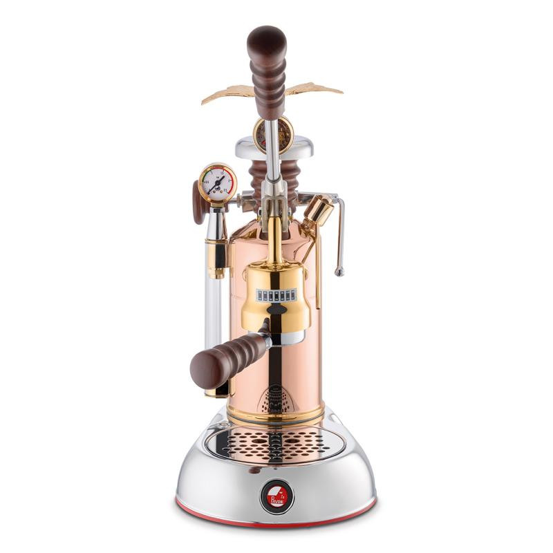 The La Pavoni Esperto Edotto espresso machine has a 1.6 liter water capacity and a power of 950 W. Its copper and chrome design allows you to make both espresso and cappuccino.