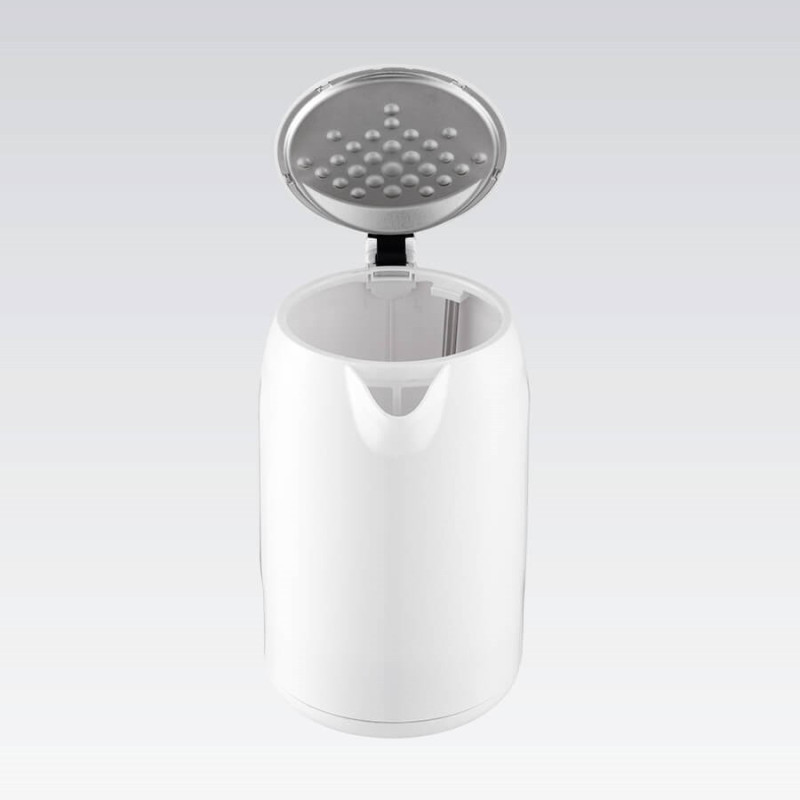 The Maestro MR-022 electric kettle has a 2.2 L capacity and operates at a maximum power of 2200 W. It features a 360° rotating base, an automatic shut-off function, and an anti-limescale filter for easy maintenance.