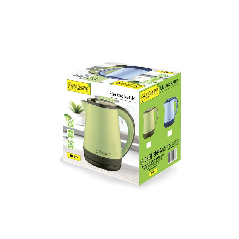 Electric kettle with a capacity of 1.2 l and a power of 1630 W. It has overheating protection, a plastic and stainless steel body and a 0.7 m long cord.