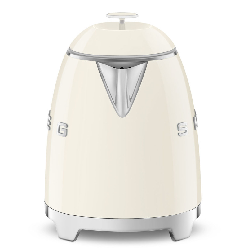The SMEG Kettle Mini 50'Style Cream KLF05CREU has a 0.8 liter capacity and operates at 1400 watts. It features a 360-degree rotating base, boil-dry protection, and an automatic shut-off function for safety.