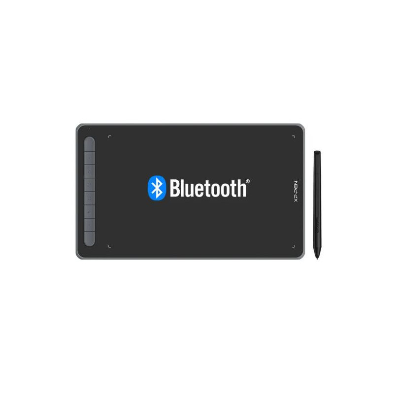 10 x 6 inches active area, support 60 degrees of tilt brush effect. Stylus Powered by X3 Smart Chip, 3 grams initial activation force. Bluetooth 5.0 Wireless Connection, available in four vibrant colors.