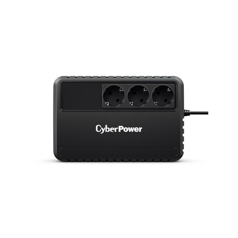 The CyberPower BU650EG is a line-interactive UPS with a power capacity of 0.65 kVA and an output power of 360 W. It operates in a 50/60 Hz frequency range and features a 4 ms response time.