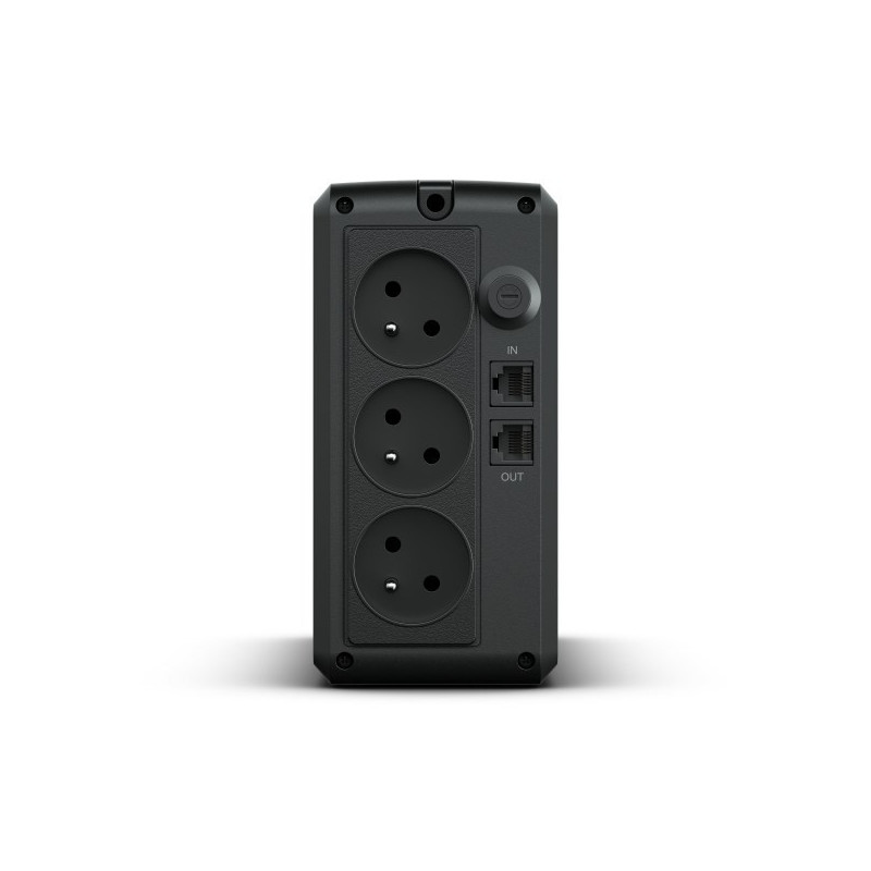 The CyberPower UT650EG-FR is a line-interactive UPS system with 0.65 kVA output power and 360 W output power. It features automatic voltage regulation (AVR) for stable output voltage, overload protection to prevent damage from excessive current flow, and an audible alarm to notify you of low battery, overload, error, and operation in battery mode.