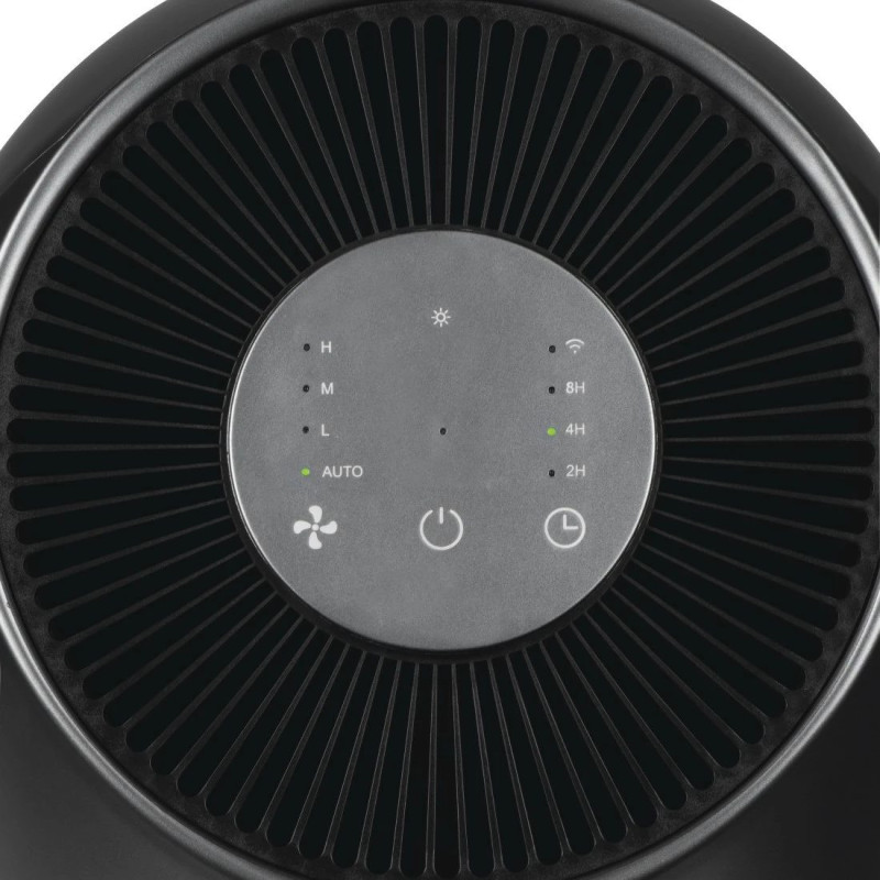 Equipped with a HEPA H13 filter, pre-filter, and activated carbon filter to remove up to 99.95% of particles including viruses, pollen, dust, and odors.