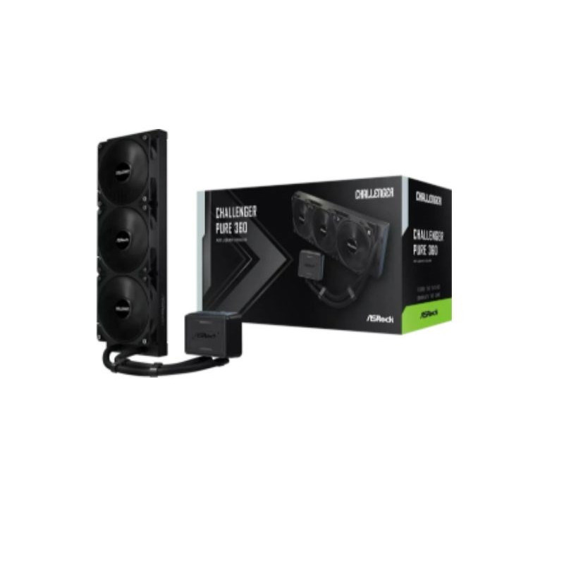 The ASRock Challenger Pure 360 Cooling is an all-in-one liquid cooler for CPUs compatible with AM4 and AM5 sockets. It features three 12cm fans, a maximum airflow of 53.9 ft³/min, and a noise level of 27dB.