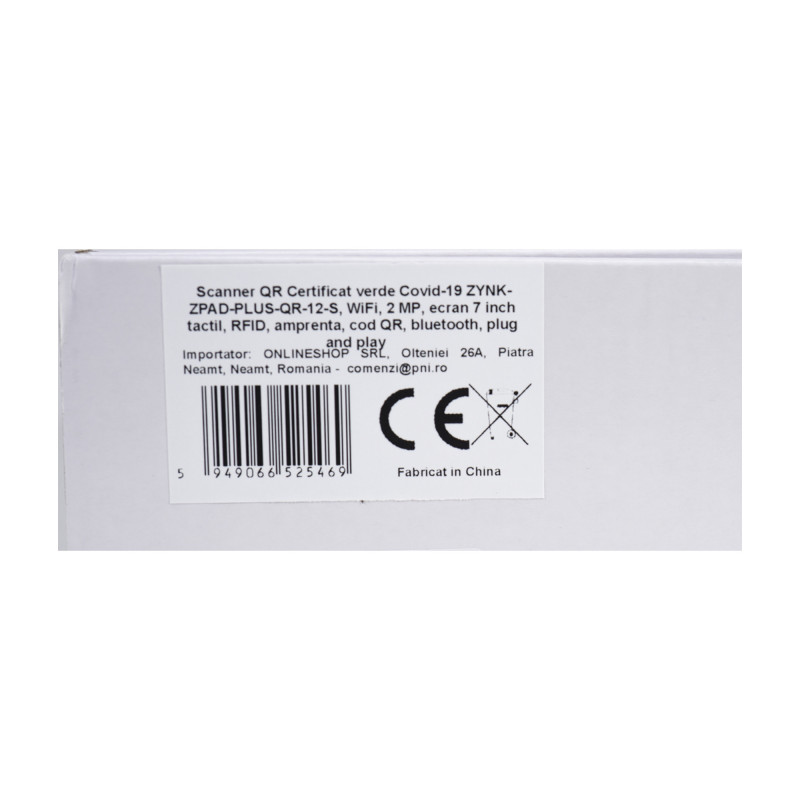 Covid-19 ZYNK-ZPAD-PLUS-QR-12-S Green Certificate QR Scanner, WiFi, 2 MP, 7 inch touch screen, RFID, fingerprint, QR code, bluetooth, plug and play