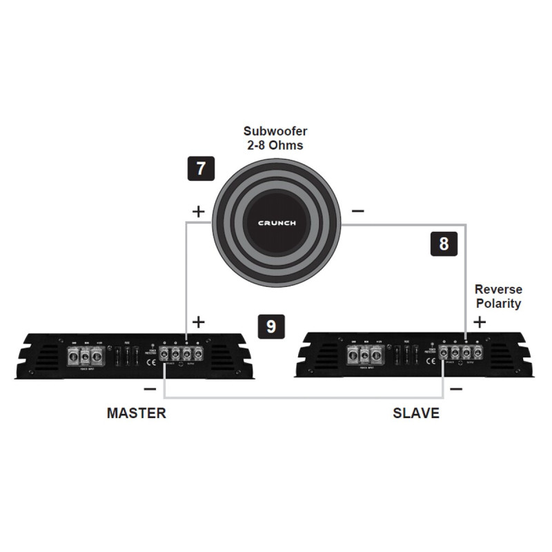 Master/Slave- possibility of connecting two amplifiers to double the power and power larger subwoofers