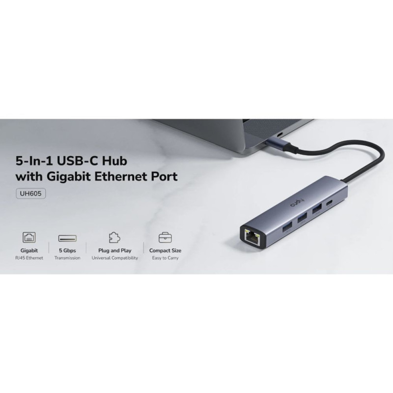 Routers Cudy UH605 USB-C 5-in-1 Hub Gigabit LAN 3x USB-A 3.0 Power Input Aluminum Grey