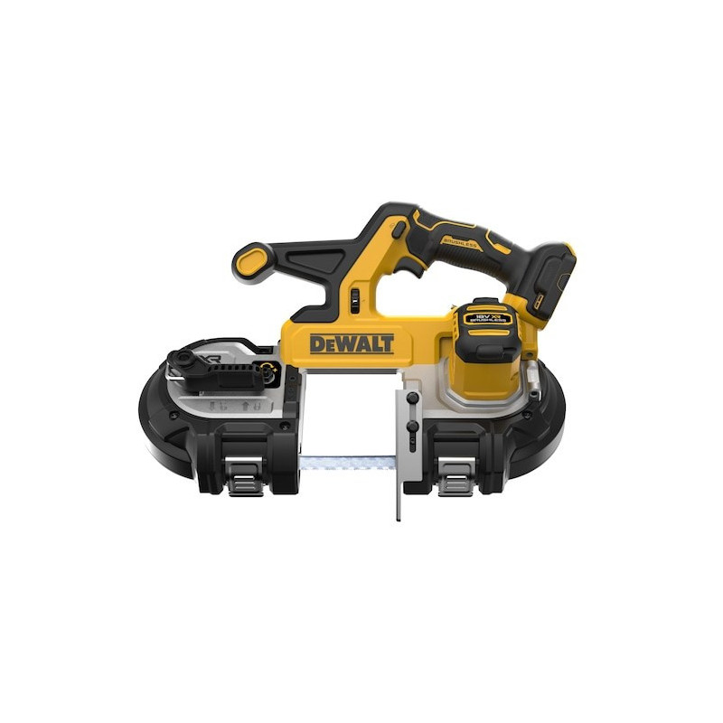 The DeWALT DCS378N-XJ band saw is powered by an 18V battery and has a height of 280mm. The kit is supplied as a single unit, without a battery charger, battery or carrying case.