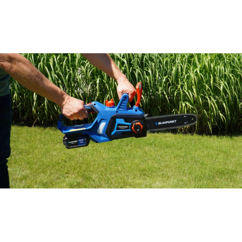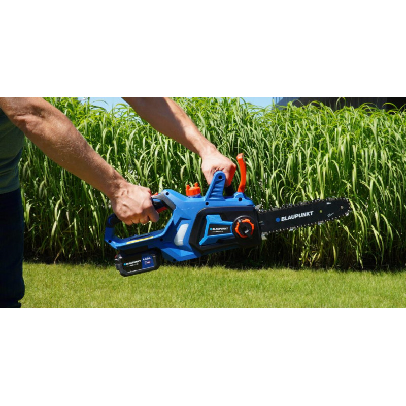 Safety is ensured with an automatic chain brake and accidental start lock. It has a 25 cm guide length and is compatible with Blaupunkt One DNA 18V batteries (sold separately).