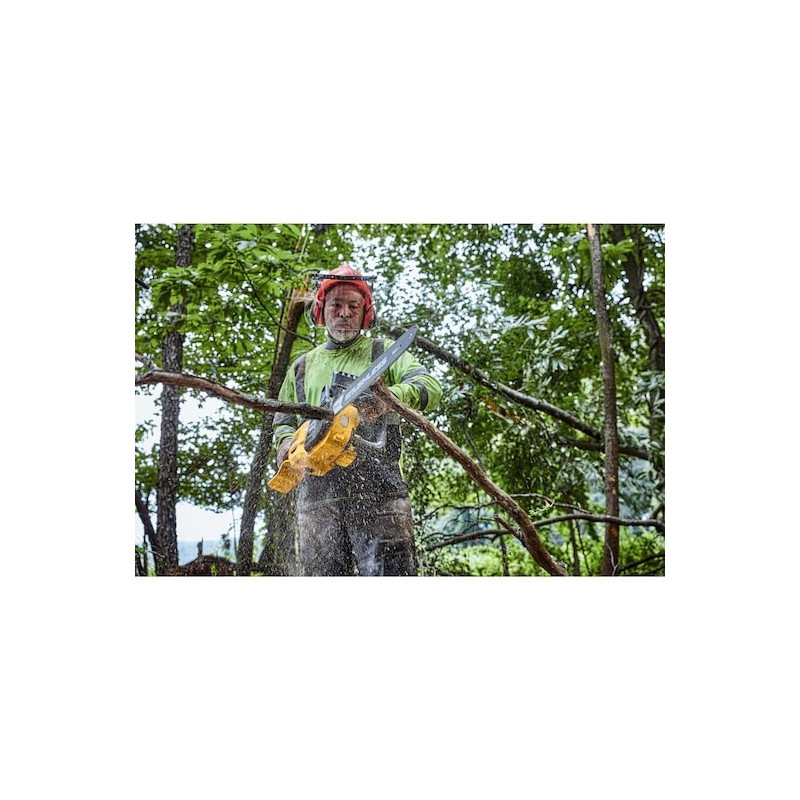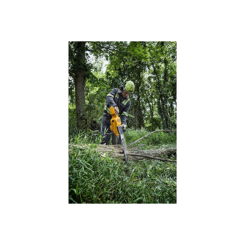 The DeWALT DCMCS575N-XJ is a cordless chainsaw designed for cutting wood and other materials. It is battery-powered, but does not include a charger or battery.