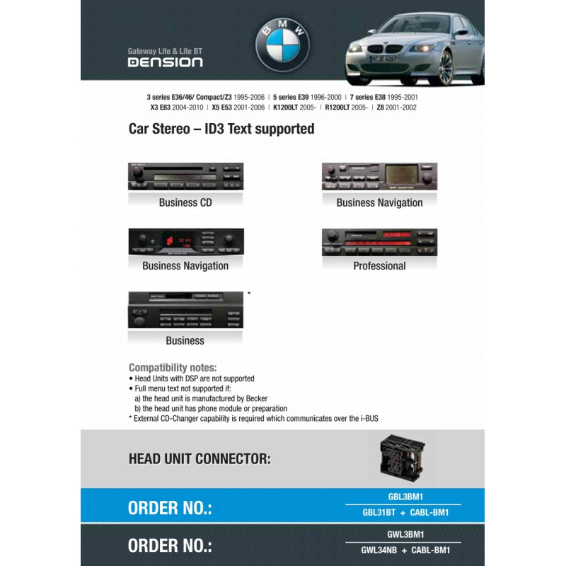 BMW 3 (E46) 1998-2005 Business Professional 4:3 Navigation BMW 3 Compact (E46) 2001-2006 Business BMW 5 (E39) 1996-2000 Business Professional 4:3 Navigation 16:9 Navigation BMW X3 2004-2010 4:3 Navigation BMW X5 2001-2006 4:3 Navigation BMW Z8 2001-2002 Business Business CD Navigation 4:3 BMW Mini (R55) 2001-2006 Wave