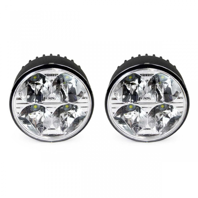 The 510HP DRL daytime running lights fit in round fog light openings, as well as on flat bumper surfaces. This is made possible by the use of masking collars that successfully cover the mounting hole in the bumper, concealing any discrepancies in size where the fog lights were. From a technical perspective, the use of 1W SMD LEDs and a perfectly reflective reflector creates an incredible illumination effect on the road, while the rear section of the lamp, acting as a heat sink, effectively dissipates heat from the interior of the lamp and extends the life of the entire system.