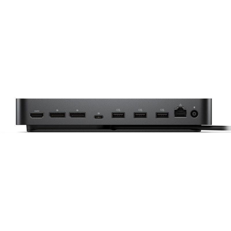 The DELL WD25 Wired USB 3.2 Gen 2 Type-C Dock supports up to four displays and provides a total of 130W of power delivery via USB Type-C. It features multiple ports, including two USB Type-C, four USB Type-A, and one HDMI, with a maximum digital resolution of 6144 x 3456 pixels.