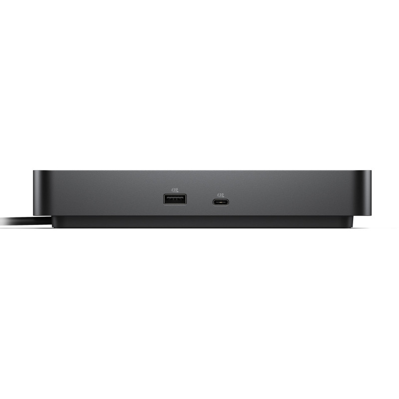 The DELL WD25 Wired USB 3.2 Gen 2 Type-C Dock supports up to four displays and delivers 130W of power over USB Type-C. It features multiple ports, including two USB Type-C, four USB Type-A, and one HDMI, with a maximum digital resolution of 6144 x 3456 pixels.