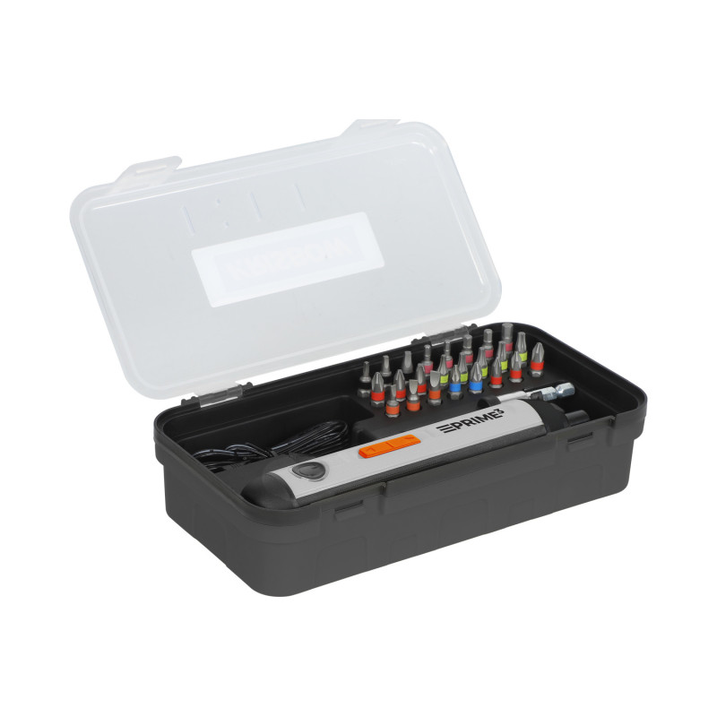 The kit includes 26 different types of bits and a ¼ handle, all packed in a handy plastic case. All this makes the TCD21 an unbeatable tool for special tasks!