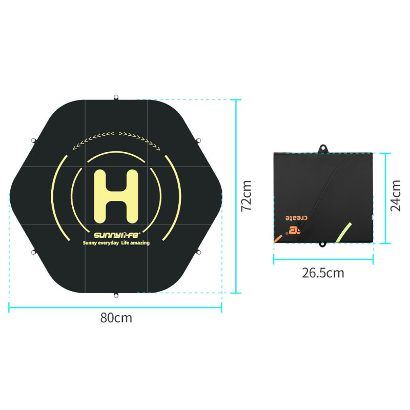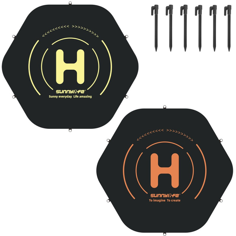 Sunnylife TJP11-80 is a universal drone landing pad made of thick, durable PU leather, 80 cm in diameter. It has a waterproof construction, is foldable for convenient transport, and comes with six stakes to ensure a firm attachment to the ground.